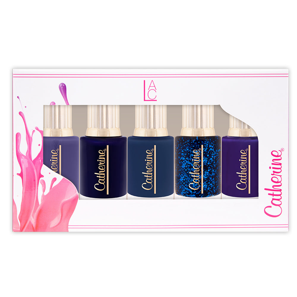 Five shades of blue in one set of Classic nail polishes.